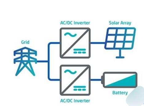 共址部署的交流耦合太陽能+儲能系統(tǒng):太陽能發(fā)電設(shè)施和儲能系統(tǒng)位于同一地點(diǎn),與電網(wǎng)共享一個互連點(diǎn)或具有兩個獨(dú)立的互連點(diǎn)。然而,太陽能發(fā)電系統(tǒng)和儲能系統(tǒng)各自連接到單獨(dú)的逆變器,并且儲能系統(tǒng)儲器位于太陽能發(fā)電系統(tǒng)的旁邊。它們可以一起發(fā)送或獨(dú)立發(fā)送電力。